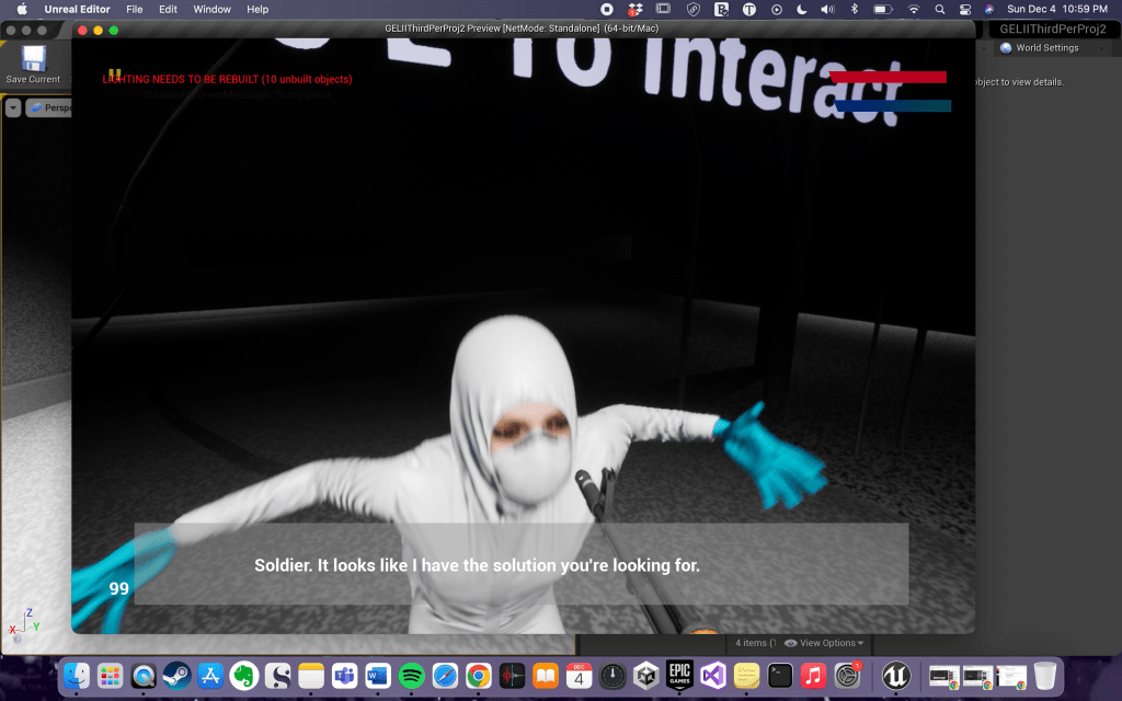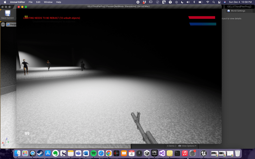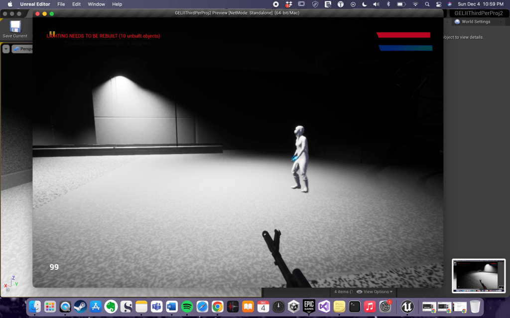 This project marks my first experience working with Unreal Engine, with a primary focus on learning its core features and mastering the Blueprint Editor. The result is a first-person shooter that incorporates interactive dialogue, cinematic cutscenes, and engaging combat mechanics.